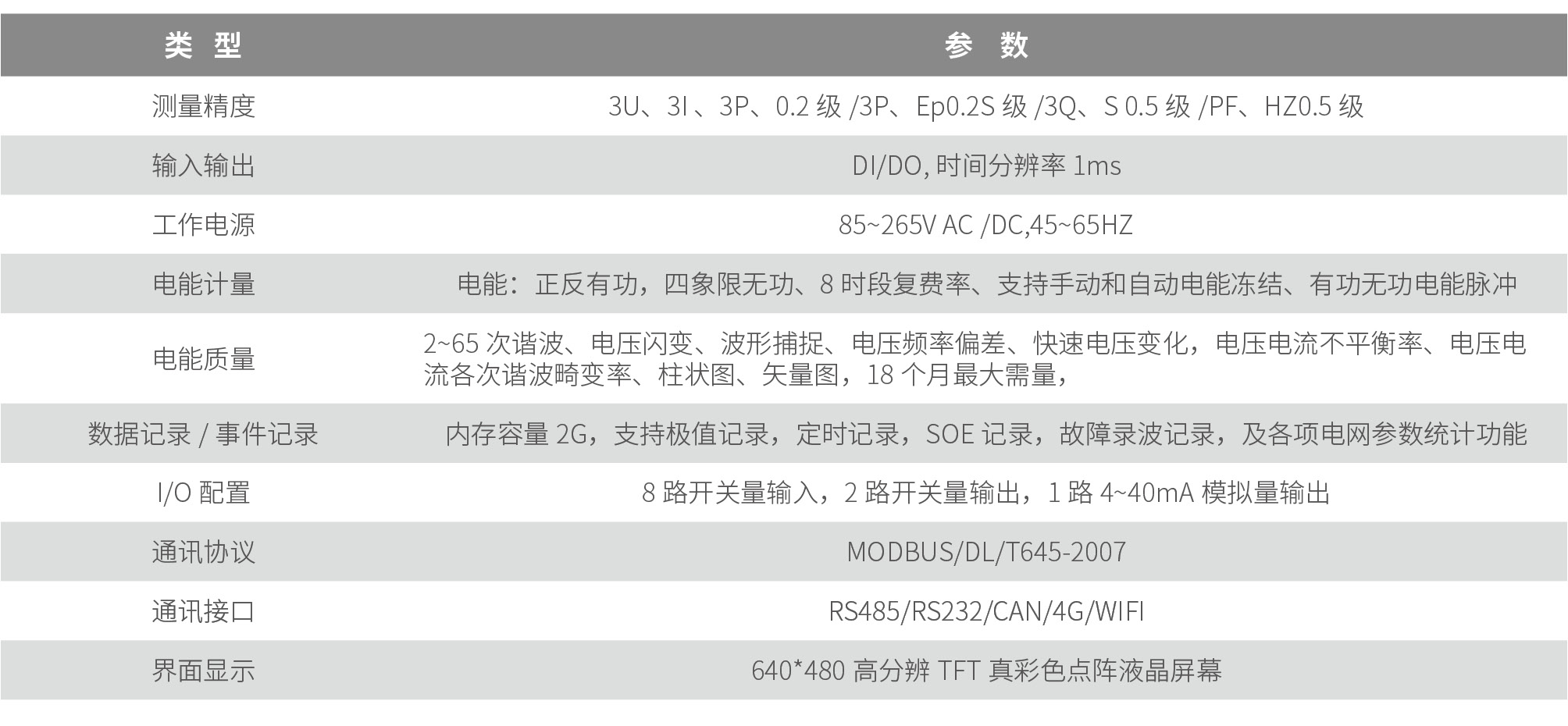 7. 数据记录——大容量2G内部存储,记录故障波形,故障事件、负荷曲线记录,定值越限记录等。